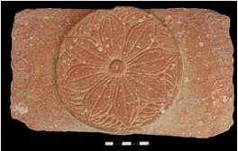 | Description / विवरण | Side A- 8 petalled lotus in three levels. I - Sepals alternating between the petals. II - 8 petals having long sharp pointed tip. III - A small disc in the centre combines both androecium and gynoecium. Side B- 8 petalled lotus design I - Sepals alternating petals. II - Broad curved 8 petals. III - Inner disc containing in turned anther lobes with gynoecium with its stylus stigmas. |