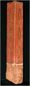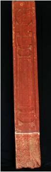 One face of the pillar shows an octagonal column emerging out of a purna-ghata base has a tapering shaft topped by amalka capital. Above on pillar the capital abacus is show with two sections - lower one resembles a railing design whereas the upper one resembles a pedestal having floral design. The pedestal carries the Dharmachakra. The other face of the pillar just adjacent to it the same design is shown except the resemblance of a crawling majesty lion figure instead of Dharmachakra.