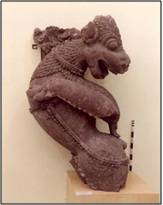 | Description / विवरण | The sculptural fragment depicting the stylized lion twisting its body to look backward. The crouching elephant and hind legs of vials are missing its tail now curls between the legs and its paws are placed in front of the chest. A long tongue also now broken protrudes from its open mouth. It has horns, mustache and bulging eyes. |