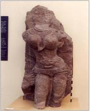 | Description / विवरण | The sculpture depicting the torso of the life-size female dancer musician standing in a graceful tribhanga pose. The head, both of the legs below knee and hands along with the attributes are broken. She wears necklaces with the lower one looping between her breasts. Her bejeweled girdle has hanging festoons and is ornamented with tassels on the hips. A scart hangs around her shoulders. |