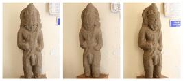 | Description / विवरण | Crude,ornamented sculpture of standing Vetal with two hands. Lower portion of legs are broken. Vetal is wearing an ornamental crown and garland of skulls. The mouth portion of the sculpture is damaged. |