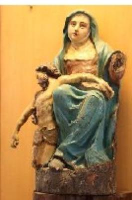| Description / विवरण | Wooden statue of marry with body of Jesus dead on her thigh. |