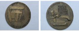 | Description / विवरण | circular bronze memento medal issued by government momento of camoes. Comoes figure on one side another side is shown a building. |
