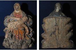 | Description / विवरण | Wooden sculpture of our lady of pigheaded. mother marry lamenting after Jesus certification. Wooden Sculpture colored in maroon and black. |