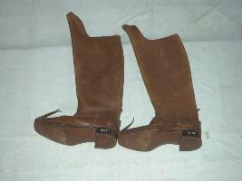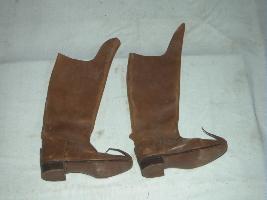 | Description / विवरण | This is a pair of camel leather shoes worn in the battle field. It has a long neck and a pointed and curved tip. |