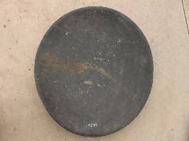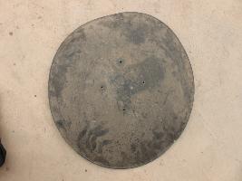| Description / विवरण | A medium, circular and slightly convex shield of iron alloy. But knobs and pad is missing. Front is badly rusted and the edges are rough. Back is also polished in black colour and there is some rusting. |