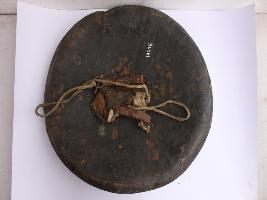 | Description / विवरण | A medium, circular and slightly convex shield of iron alloy. There are three small gilded knobs in the center and the back side of is padded between the knobs but it is damaged and grip is intact. Front is badly rusted and the edges are rough. Back is also polished in black colour and there is some rusting. |