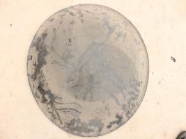 | Description / विवरण | A medium, circular and slightly convex shield of iron alloy. But knobs and pad is missing. Front is badly rusted and the edges are rough. Back is also polished in black colour and there is some rusting. |