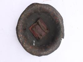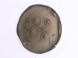 | Description / विवरण | A medium, circular and slightly convex sheild of iron alloy. There are four small guilded knobs in the center and the back side of is padded between the knobs. Front is badly rusted and the edges are rough. Back is also polished in black colour and there is some rusting. |