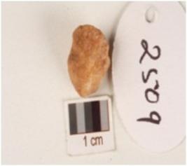 | Description / विवरण | Fragment of quartz pebble flake scars on surface not visible amymore visible cortx rough surface |