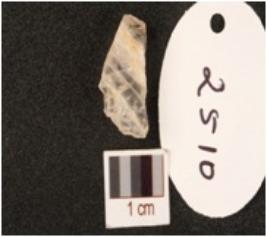 | Description / विवरण | A micro quartz dibitage of a flake parallel micro scars, prepared platform |