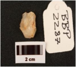 | Description / विवरण | Debitage on quartz biproduct of tool marking |