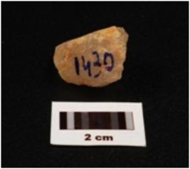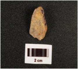 | Description / विवरण | A quart debitage with flake scars and cortex visible on surface. |