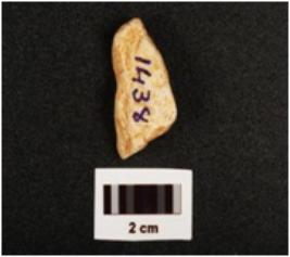 | Description / विवरण | A quart zite debitage with partly chipped off and smooth surface. |