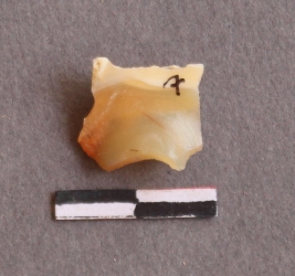 | Description / विवरण | It is a lithic debitage with sharp cut edges, flaked and with bulb of percussion visible. It is fragment of chalcedony. |