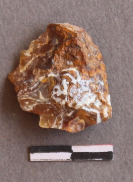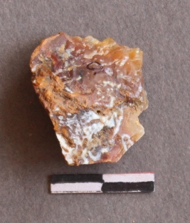 | Description / विवरण | It is a lithic debitage with sharp cut edges, flaked and with bulb of percussion visible. It is fragment of jasper. |