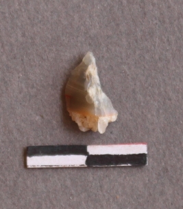 | Description / विवरण | It is a lithic debitage with sharp cut edges, flaked and with bulb of percussion visible. It is fragment of banded agate. |