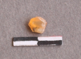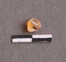 | Description / विवरण | It is lithic debitage flaked with sharp cut edges, bulb of percussion seen in fragment. It is chalcedony fragment. |
