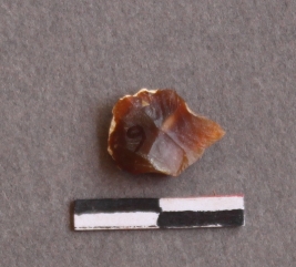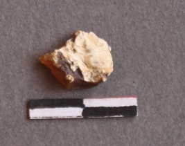 | Description / विवरण | It is lithic debitage flaked with sharp cut edges, bulb of percussion seen in fragment. It is carnelian fragment with cortex at one side. |