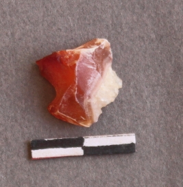 | Description / विवरण | Carnelian with iron impurities and crystalline core, it is in reddish orange in color. |