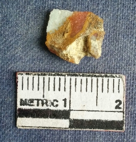 | Description / विवरण | Jasper is a cryptocrystalline piece with cut edges as a result of flaking. Cortex on it and bulb of percussion can be seen. |