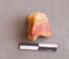 | Description / विवरण | It is a chalcedony flake with bulb of percussion on ventral side of the fragment. Flake ridges on the surface. |