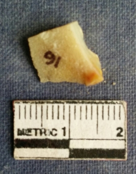 | Description / विवरण | The agate piece has clear flake scars and ripple marks on the surface of the piece. Bands can be seen on it. |