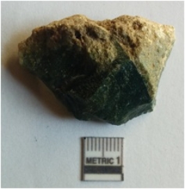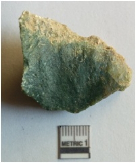 | Description / विवरण | The jasper flake has a prominent bulb of percussion and a cortex on the lateral side of the flake. Deep green in color. The flake has no added impurities in the jasper matrix. Sharp flaked edges. |