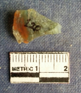 | Description / विवरण | Jasper is a cryptocrystalline piece with cut edges as a result of flaking. Bulb of percussion can be seen. |