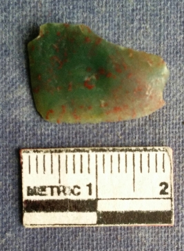 | Description / विवरण | Jasper is a cryptocrystalline piece with cut edges as a result of flaking. Bulb of percussion can be seen. |