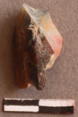 | Description / विवरण | This is lithic debitage of jasper stone, with rough edges. |