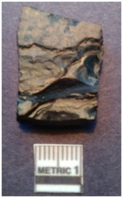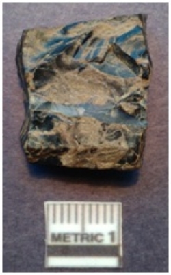 | Description / विवरण | It is banded jasper, squarish in shape. Work on the edges. Flake scars on the surface. Blackish brown in color. |