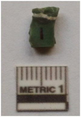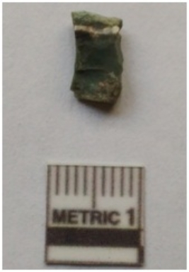 | Description / विवरण | It is a chert flake. Flake ridges on the surface with sharp edges. Greenish in color. No working edges seen. |