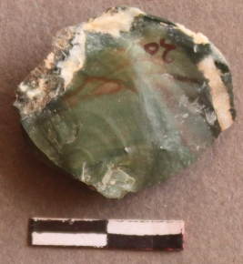 | Description / विवरण | This is lithic debitage of jasper stone, with rough cut edges. |