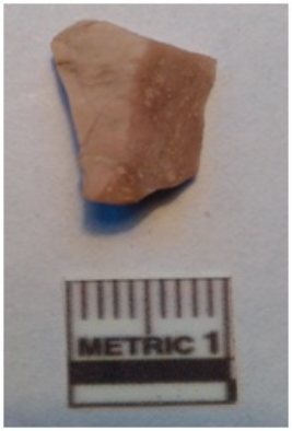 | Description / विवरण | It is a chert flake. Flake ridges on the surface with sharp edges. Creamish brown in color. No working edges seen. |