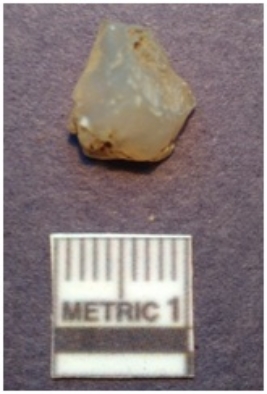 | Description / विवरण | It is a quartz flake scars on the surface. Cortex on one side of the surface. It is a glassy quartz. |