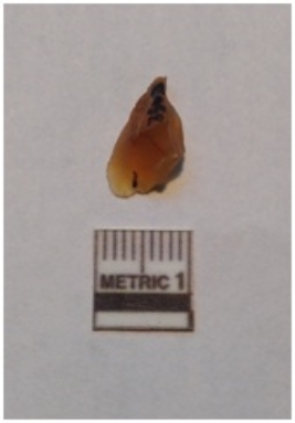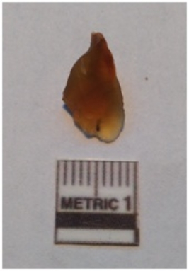 | Description / विवरण | It is a carnelian flake, translucent in appearance. Flake scars on the surface with sharp edges. |