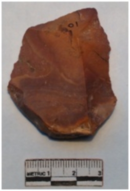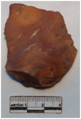 | Description / विवरण | It is a chert flake, positive bulb on the ventral side. Flake scars on the surface with sharp lateral margins. |
