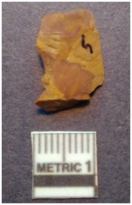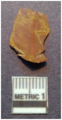 | Description / विवरण | It is a chert flake scars on the surface with ripples visible in them. Positive bulb of percussion on the ventral side. Striking platform on the proximal end. Brownish in color. |