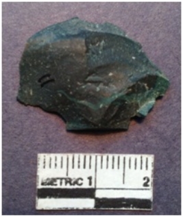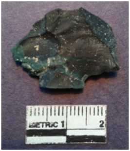 | Description / विवरण | It is a chert flake scars on the surface with ripples visible in them. Positive bulb of percussion on the ventral side. Striking platform on the proximal end. Greenish in color. |