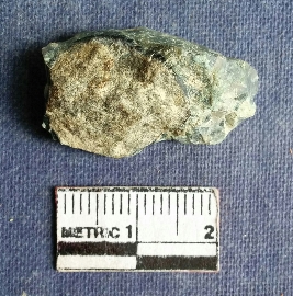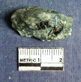| Description / विवरण | The dark schist piece has flake scars on the surface and sharp edges as a result of flaking. |