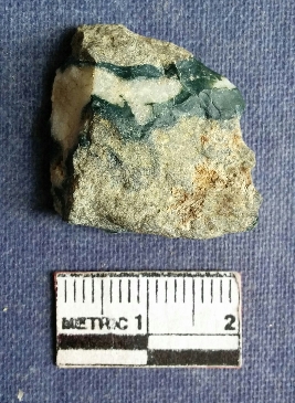 | Description / विवरण | Jasper is a cryptocrystalline piece with cut edges as a result of flaking. With bulb of percussion and cortex end. |