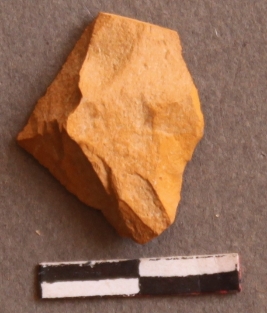 | Description / विवरण | Banded chert stone with cortex seen, bulb of percussion prominent. |