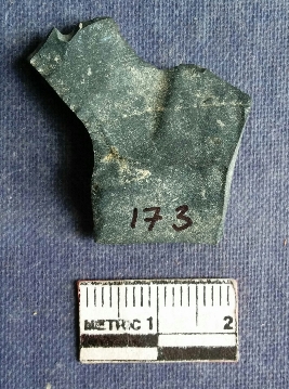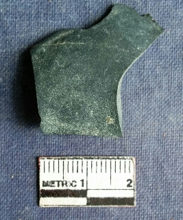 | Description / विवरण | This is a thin flat flake of chert stone with a retouched bulb of percussion on one corner . A small fraction of cortex seen, sharp thin edges. |