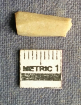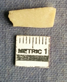 | Description / विवरण | This is a fragment of chert stone blade with broken ends and flaked ridges. Trapizium cross section. |
