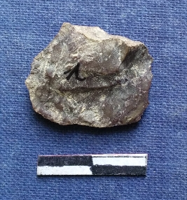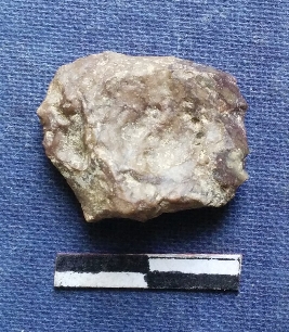| Description / विवरण | Chert stone with bulb of percussion on one side, sharp thin edges. |