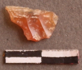 | Description / विवरण | Chalcedony with prominent bulb of percussion also flaked. |