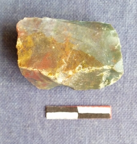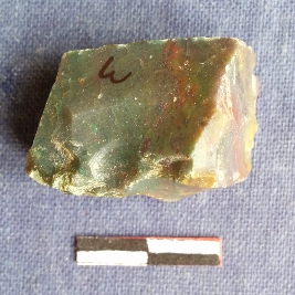 | Description / विवरण | Jasper fragment with cortex covered on one side surface. Flakes had been removed presence of ripples on one surface. |