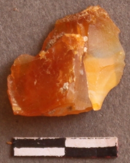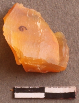 | Description / विवरण | Chalcedony with bulb of percussion visible, translucent, yellow in color suggest iron impurities. |
