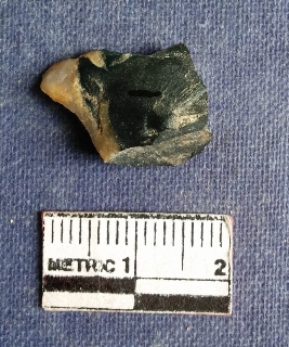 | Description / विवरण | This is a jasper flake with bulb of percussion seen on one side, flaked ridges on the other, retouched, also with stiation marks. |